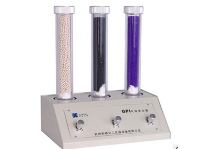 凈化器具有三路獨立的氣路流程,對氣體有害雜質(zhì)進行針對性的凈化處理。如:脫除水份,可填裝變色分子篩或變色硅膠;脫除烴類(CH2),可填裝活性炭;脫除CO2,可填裝燒堿石棉等。根據(jù)不同的要求,還可以將三路串接使用,達到三級深度凈化的要求。