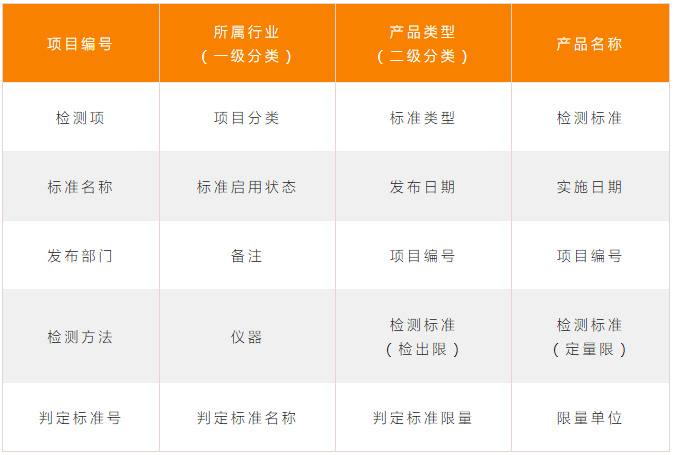 | 檢測(cè)項(xiàng) | 項(xiàng)目分類 | 標(biāo)準(zhǔn)類型 | 檢測(cè)標(biāo)準(zhǔn) |
